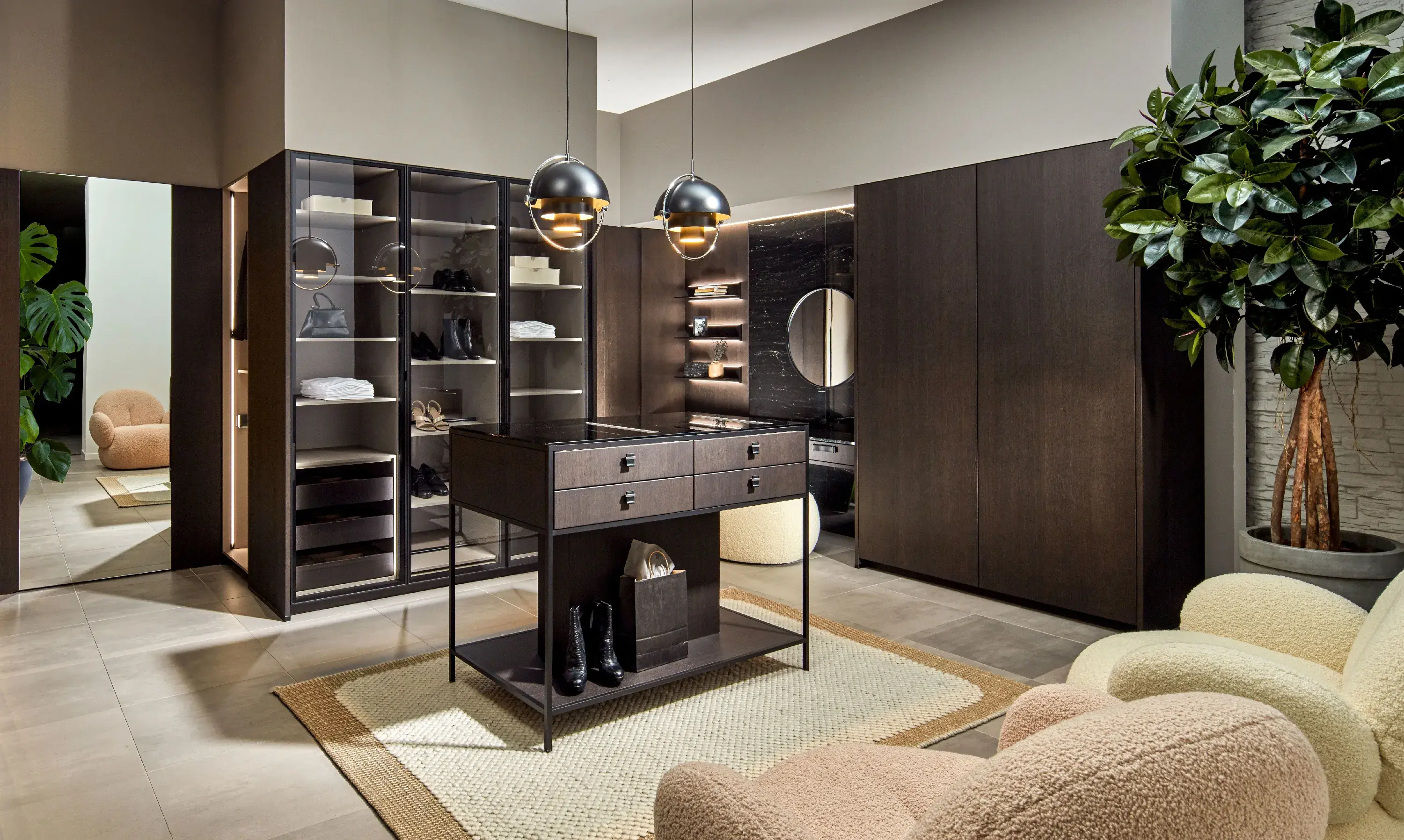 Die wohnraumübergreifende Inneneinrichtung verbindet alle Wohnräume zu einem harmonischen und gemütlichen Wohnkonzept, das den Lebensraum in ein echtes Zuhause verwandelt. Stillvolle Wohnmöbel und perfekt durchdachte Ankleideräume schaffen stilvolle und zugleich funktionale Wohlfühlorte, die die Persönlichkeit widerspiegeln und ein einzigartiges Wohngefühl erzeugen.