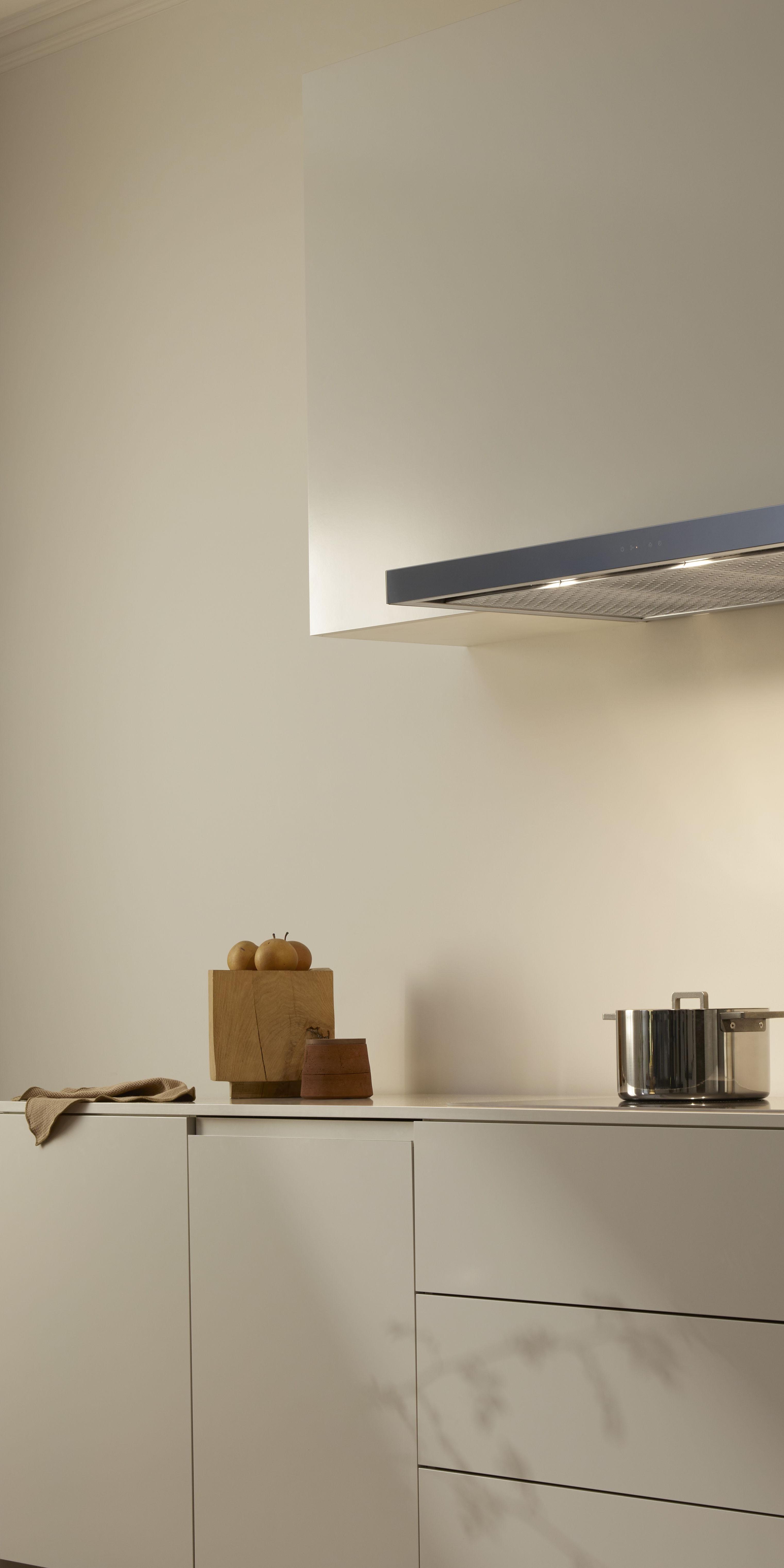 Zeitlose Eleganz und klare Linienführung sind für die Abzugshauben von V-ZUG charakteristisch. Schmale Frontdesigns und Premium-Materialien wie Glas und Edelstahl fügen sich nahtlos in die Küchenumgebung ein: