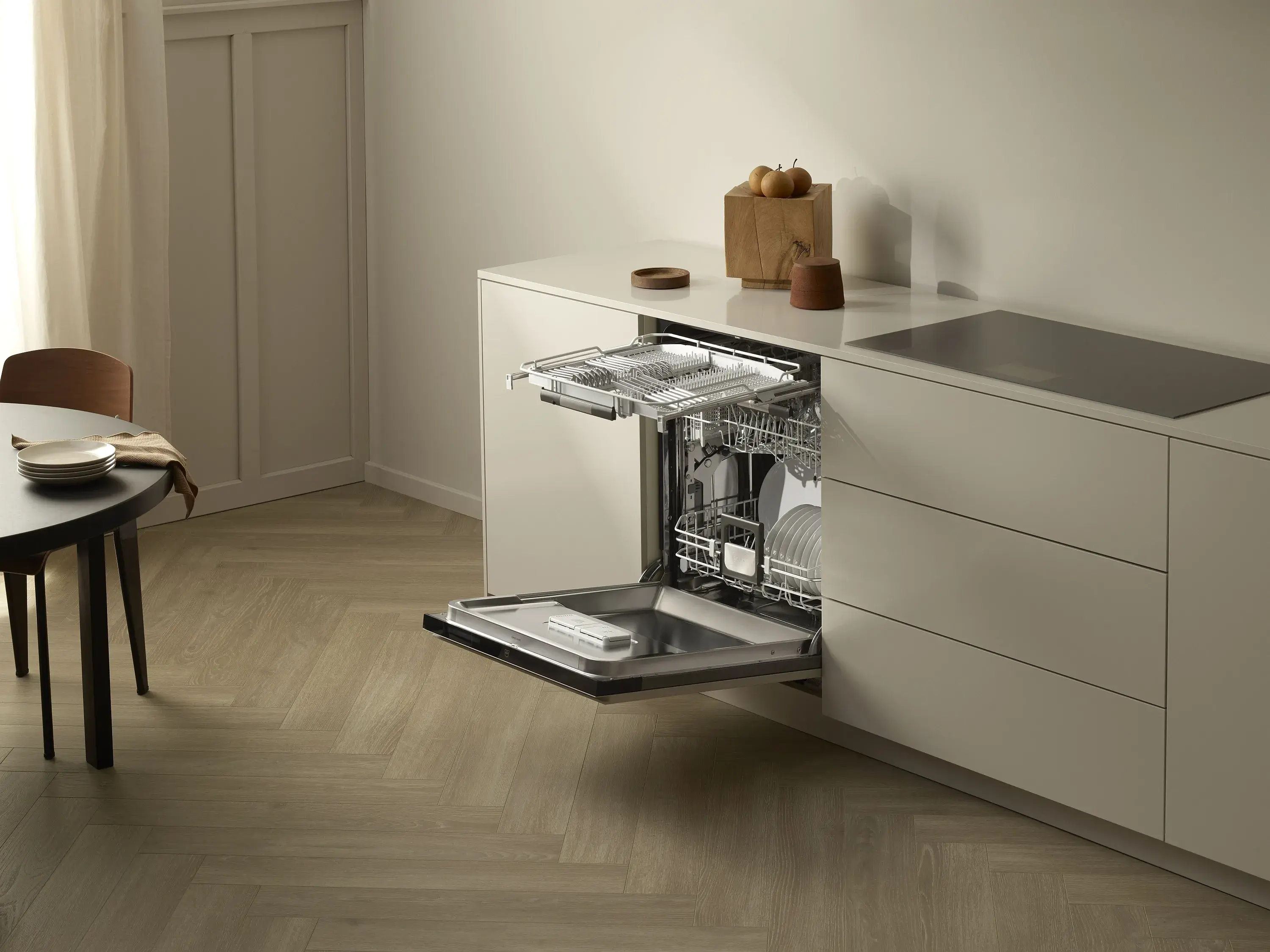 Das Gerät verfügt über leistungsstarke, patentierte Programme, die weit über die alltäglichen Anforderungen hinausgehen. Dazu gehören neun neue Programme für verschiedene Arten von Gläsern oder schwer zu reinigendes Geschirr. Dieser Geschirspüler wurde speziell für die Bewirtung von Gästen entwickelt, wärmt Teller auf, reinigt Partygeschirr in elf Minuten und entfernt auch hartnäckig eingebrannte Speisereste. Das besonders leise Programm Silent eignet sich perfekt für offene Küchen.