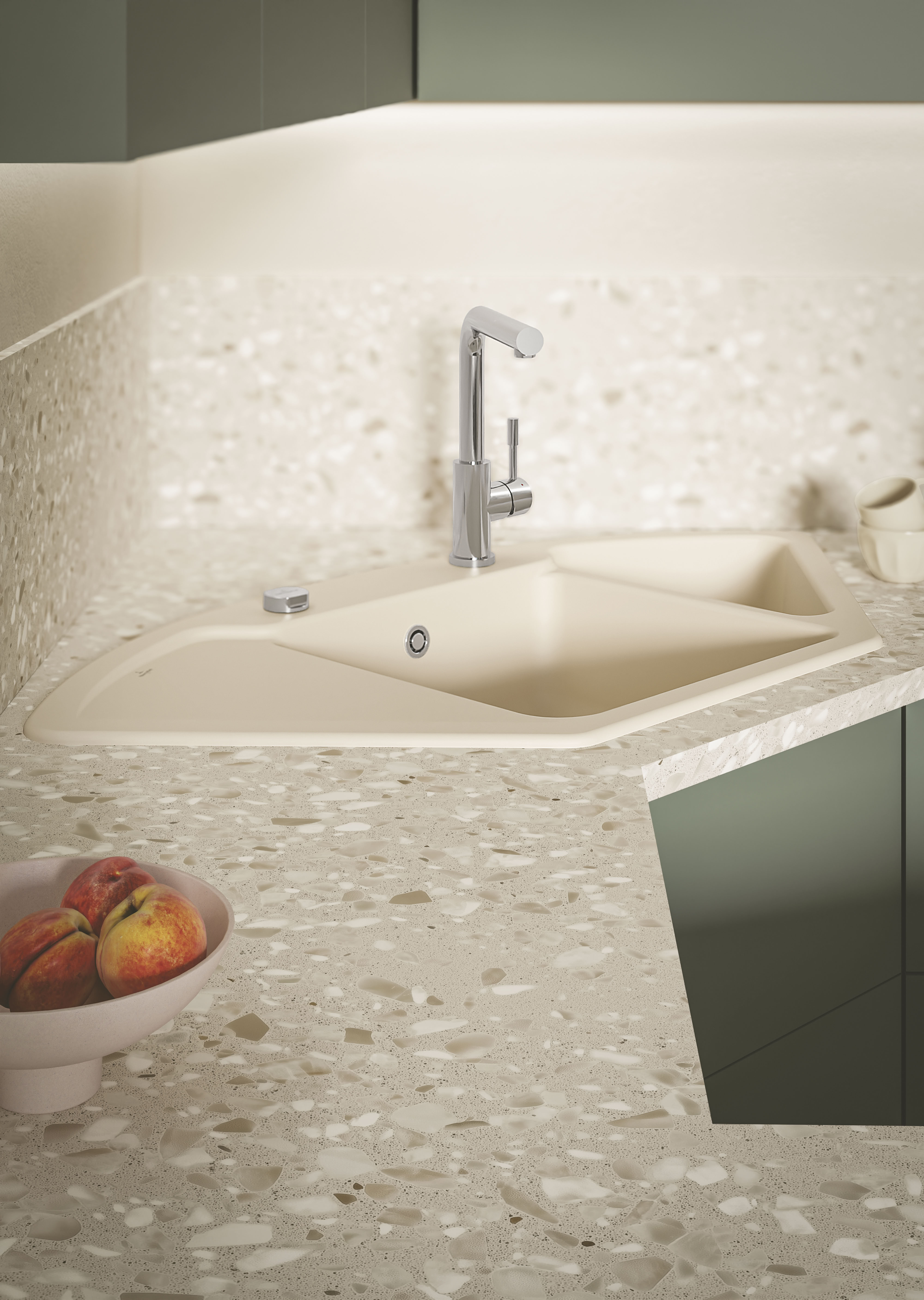 Mit der neuen Eckspüle der Kollektion Subway Style wird selbst die kleinste Küche zum Raumwunder. Durch ihre clevere Eck-Integration schafft sie Platz, wo sonst ungenutzte Fläche bleibt.